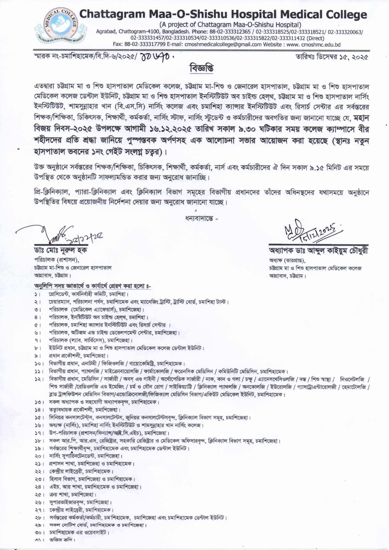 Chattagram Maa-O-Shishu Hospital Medical College (CMOSHMC) is one of the top ranking private medical college in Bangladesh.