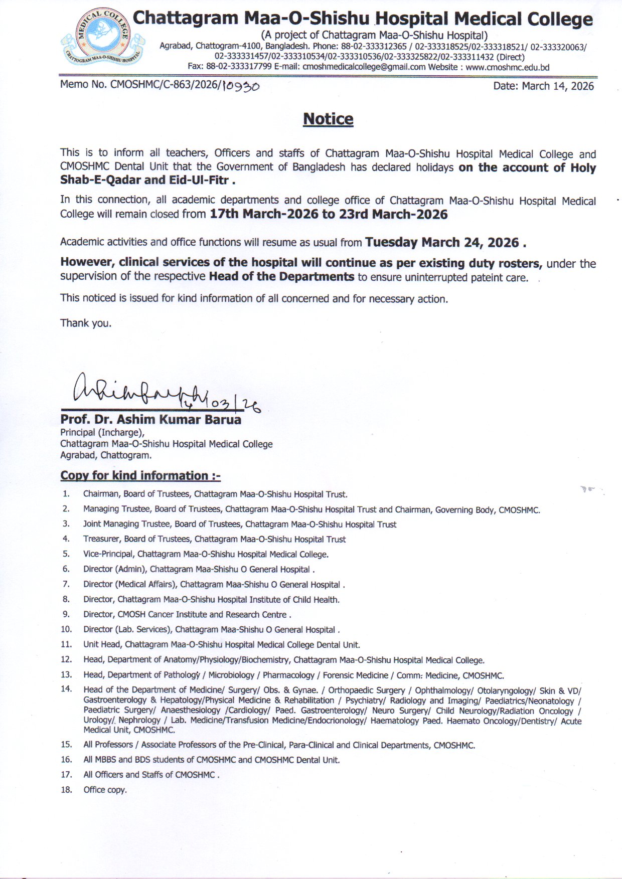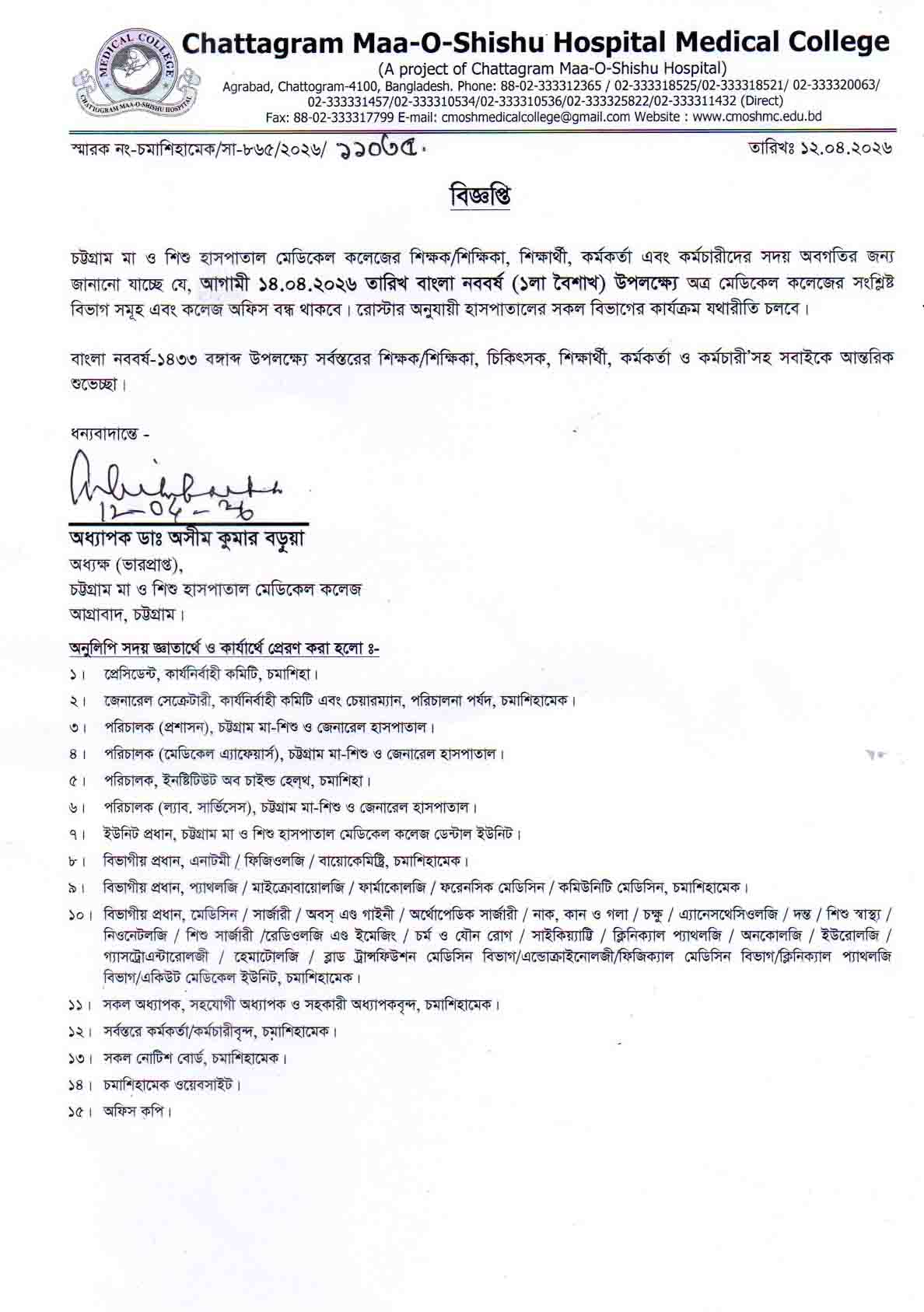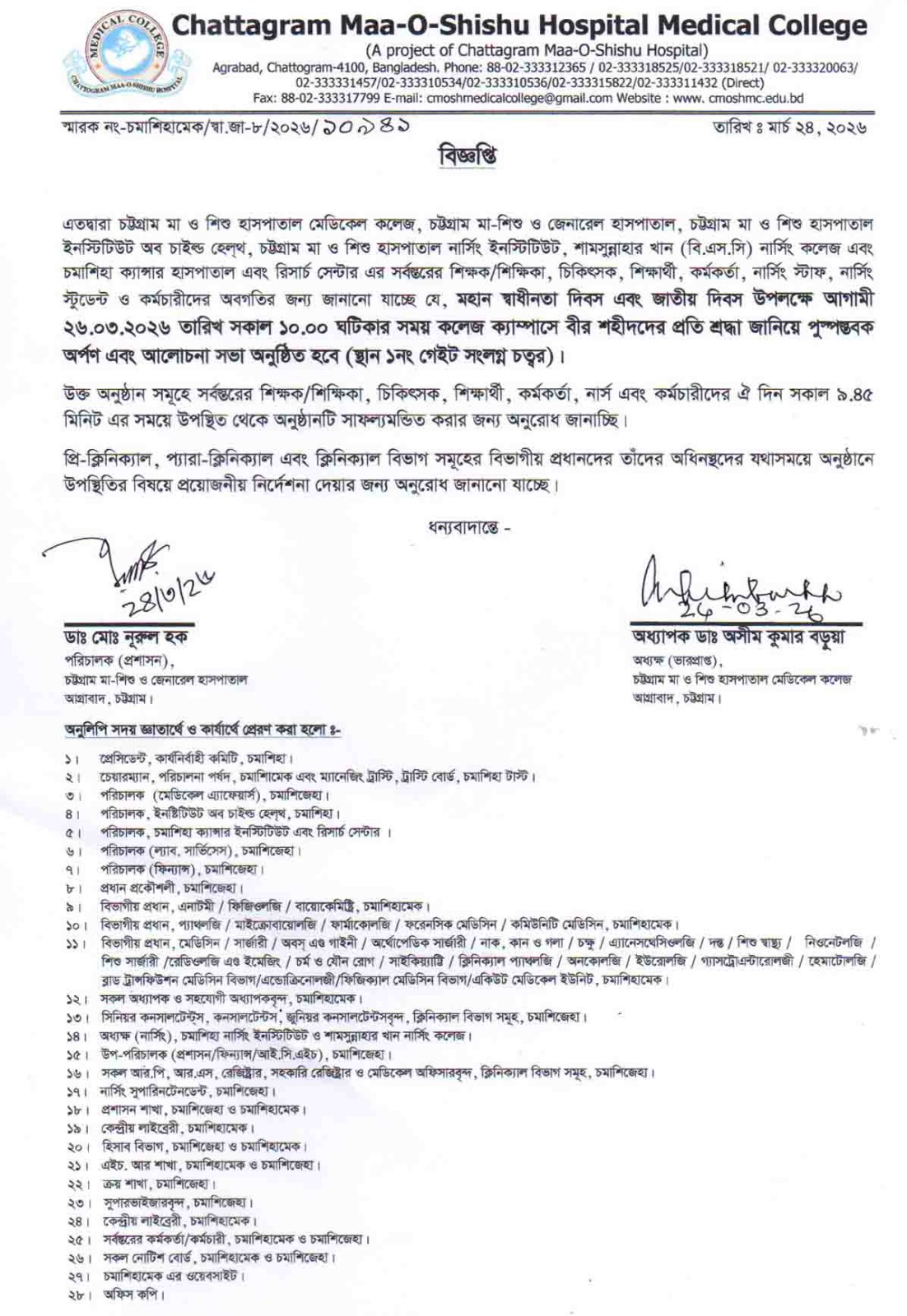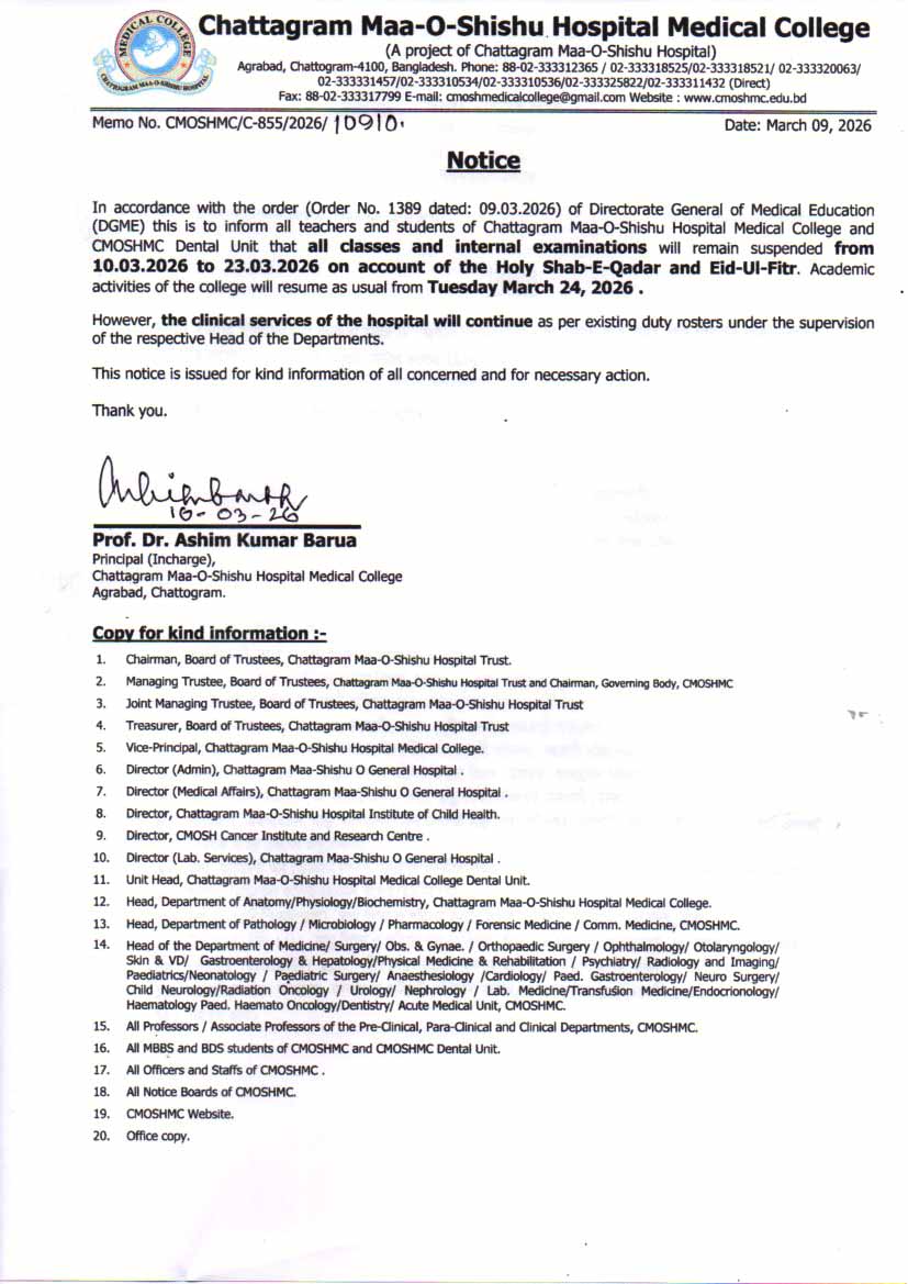 Chattagram Maa-O-Shishu Hospital Medical College (CMOSHMC) is one of the top ranking private medical college in Bangladesh.