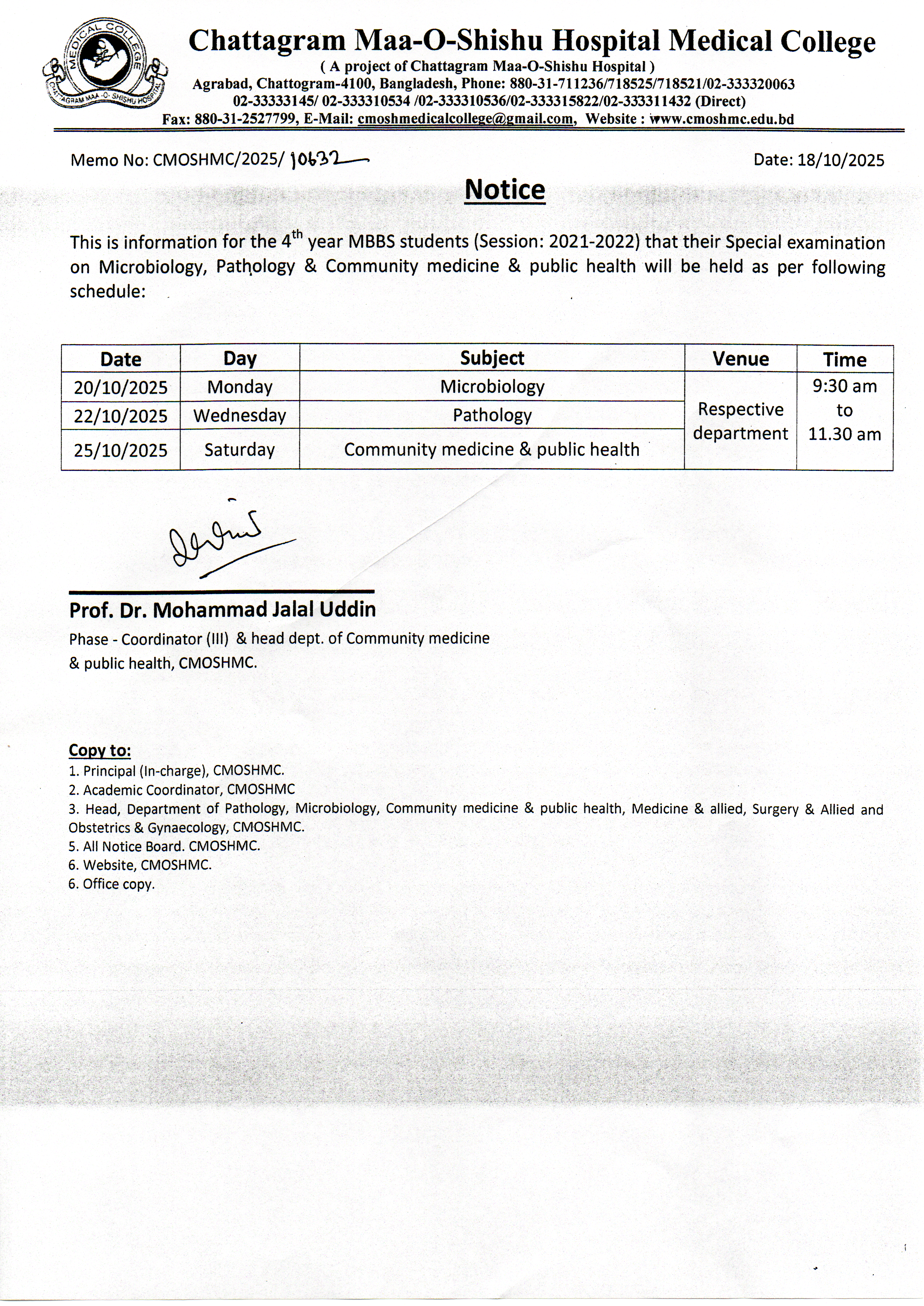 Special Examination Notice – 4th Year MBBS (Session: 2021–2022)