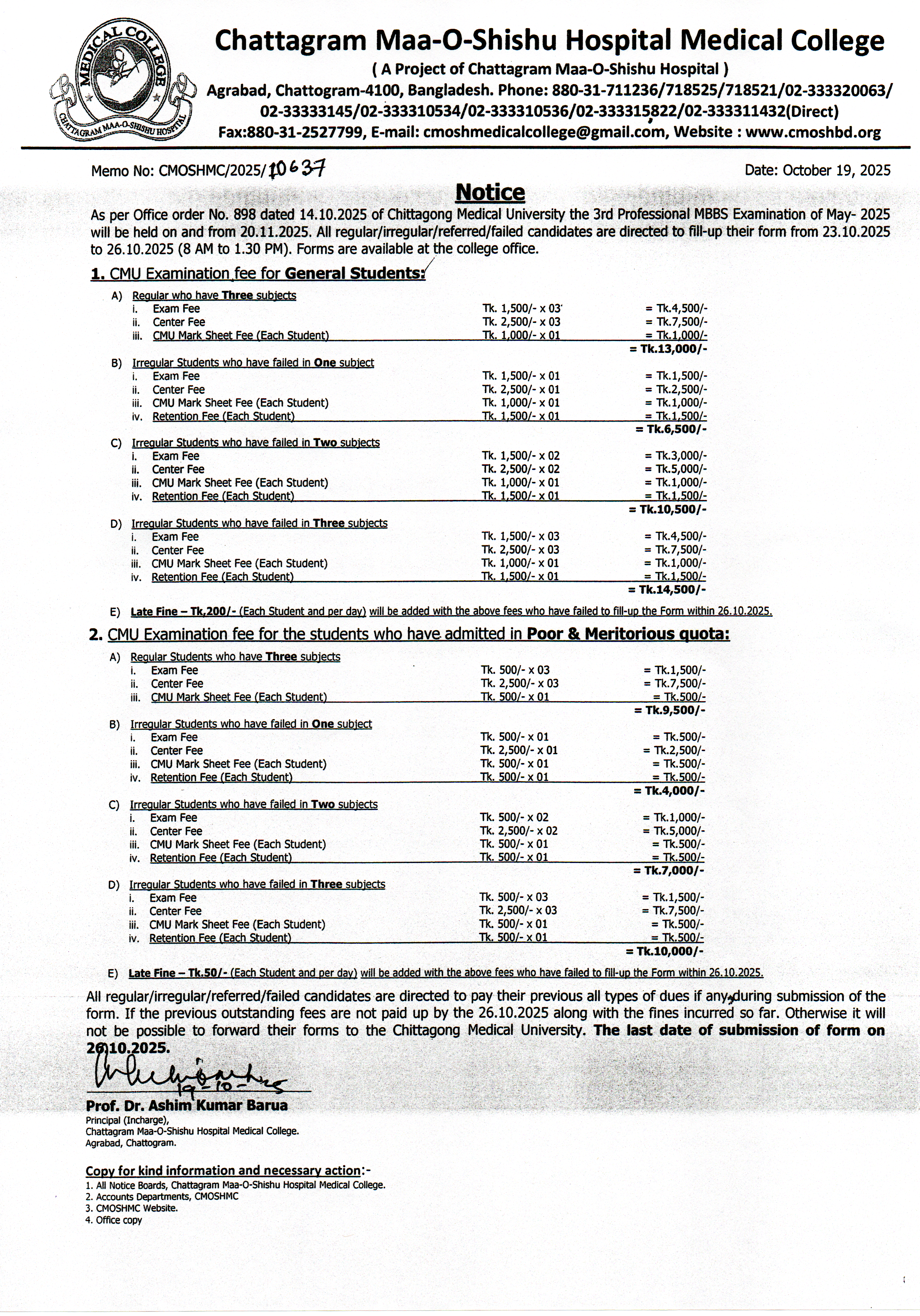 Notice regarding form fill-up for the 3rd Professional MBBS Examination of May - 2025