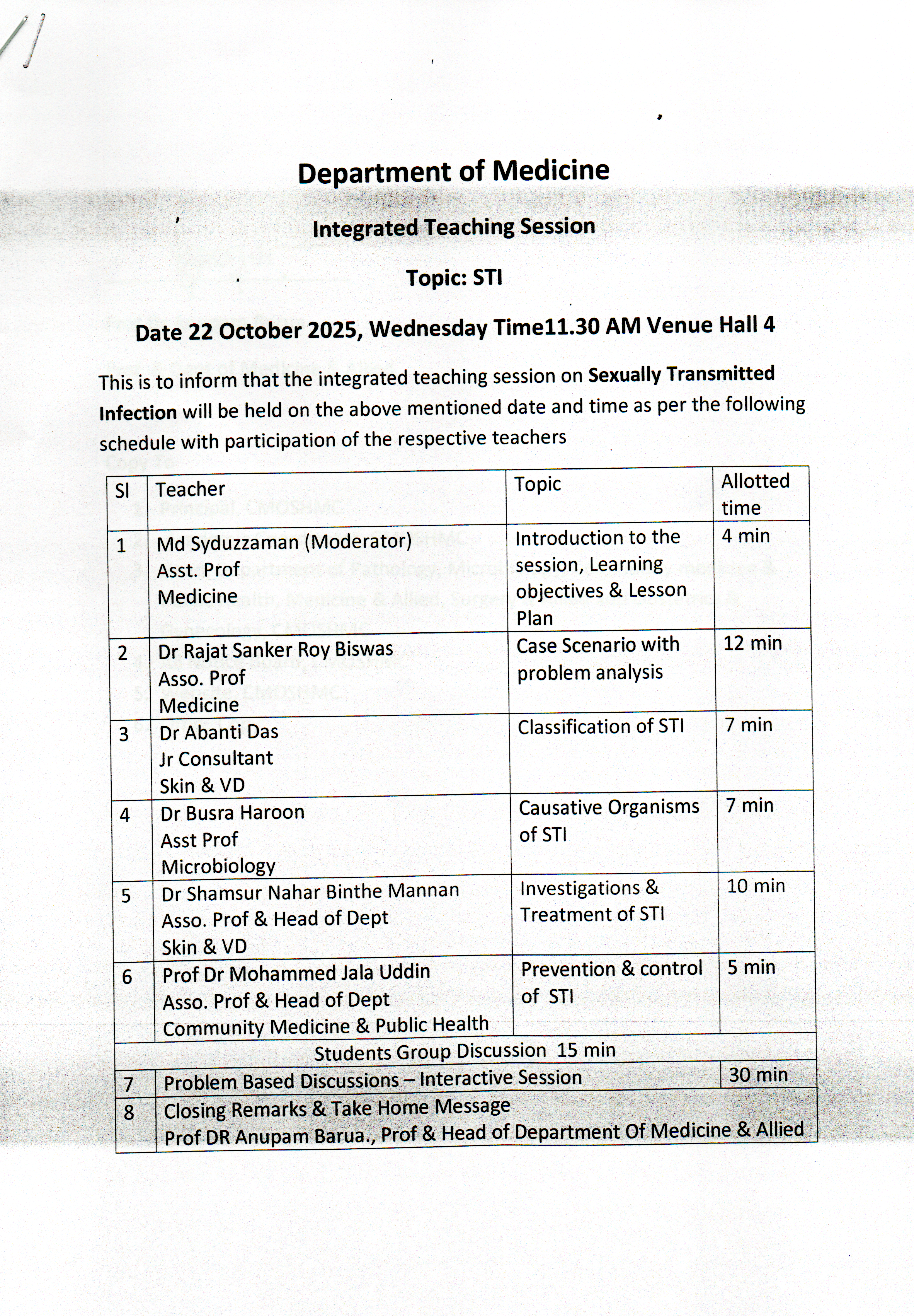 Notice for Orientation Program for 3rd year MBBS Student (CMOSHMC-XVIII) on 17th February, 2025 at 11 AM